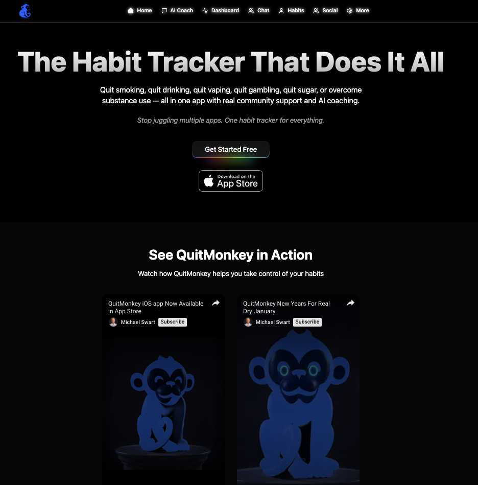 QuitMonkey is a modern habit platform designed to help people manage multiple habits in real life, not just one problem at a time.